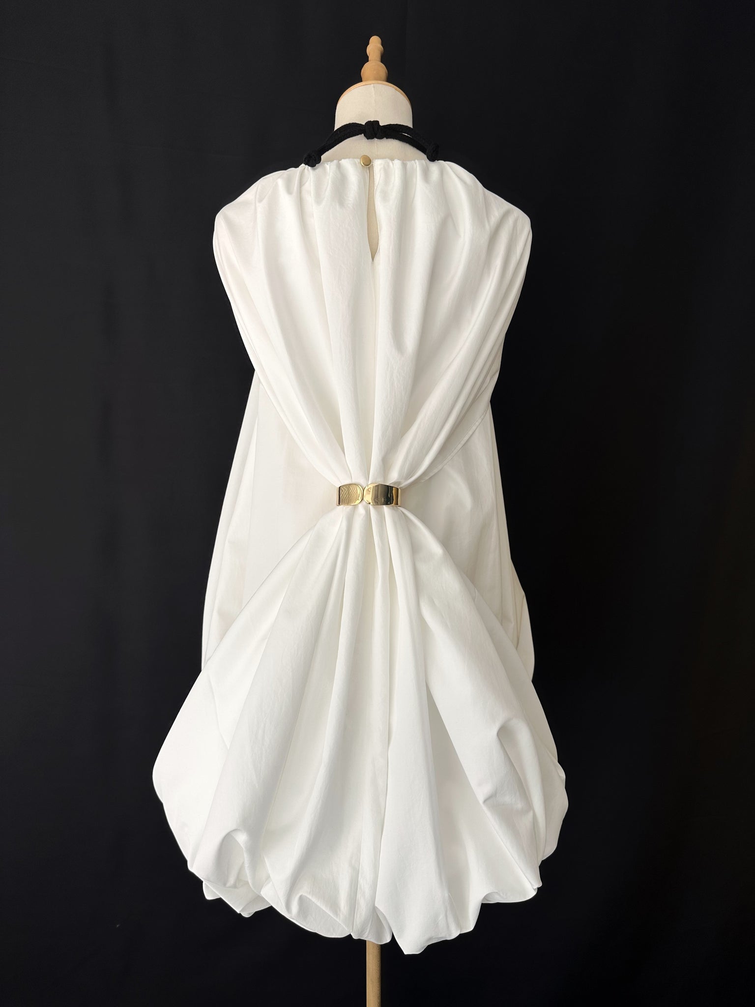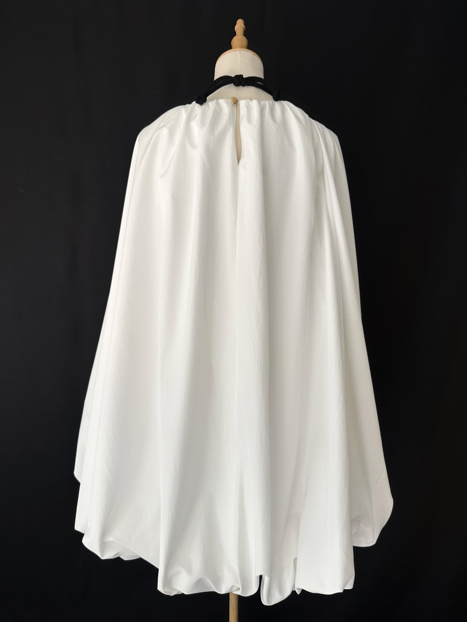 UNNIKKO l Cloud Dress inspired by the clouds and the wind. Dress with Elegant built-in cape. Cape can be moved to the back or worn over shoulders. Place a bracelet or cuff on the back to accentuate the cape and hold it back and let the dress speak for itself. Button on the back neckline for ease of dressing. Pockets in the side seams because a dress isn't a dress without pockets. Microactive Fabric keeps the dress lightweight and breezy.